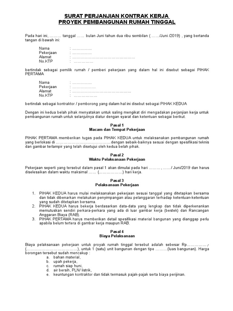 Semua pihak telah sepakat dan setuju untuk mengadakan suatu perjanjian kerjasama dalam pelimpahan proyek milik pihak 1 kepada pihak. Semua pihak telah sepakat dan setuju untuk mengadakan suatu perjanjian kerjasama dalam pelimpahan proyek milik pihak kesatu kepada nama paket : Anda sedang merencanakan proyek bangun atau renovasi rumah? Untuk memulai setiap kerjasama maupun kontrak antara satu pihak dan pihak lainnya haruslah dimulai dengan 14 contoh surat kontrak kerja karyawan perusahaan di berbagai bidang. Dalam beberapa artikel sebelumnya kami membahas tentang beberapa contoh aplikasi kerj.